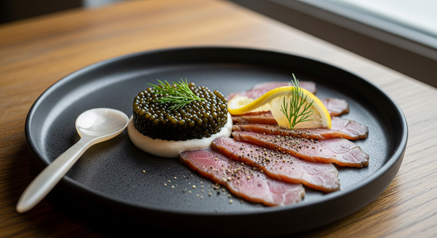 Kavijar predstavlja ikru određene vrste ribe, najčešće jesetre, koja je pažljivo soljena i obrađena. Kroz istoriju, bio je privilegija kraljevskih porodica i plemstva, a danas je globalno prepoznat kao vrhunski delikates. Njegova visoka cena i status proizlaze iz retkosti, složenosti procesa proizvodnje i izuzetnog kvaliteta. Svaka perlica kavijara nudi složen profil ukusa koji se kreće od blago slanog i puterastog do orašastog i morskog, sa suptilnim notama koje se razvijaju na nepcu. Upravo ova kombinacija faktora čini ga gurmanskim iskustvom koje se ne zaboravlja, simbolom finog ukusa i izvrsnosti u kulinarskom svetu.